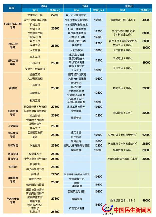 學校設有商學院、建筑工程學院、健康管理學院、國際教育學院、機械與汽車工程學院、信息工程學院、藝術與傳媒學院、幼師學院、旅游管理學院、農(nóng)學院、人文學院、教育學院、體育學院、馬克思主義學院等14個二級學院。現(xiàn)開設本科專業(yè)40個,高職??茖I(yè)37個,涵蓋工學、管理學、藝術學等9個學科門類,形成了以工學、管理學為主,多學科協(xié)調發(fā)展的學科專業(yè)布局。目前學校建有2個省級一流本科專業(yè),4個省民辦本科高校優(yōu)勢特色專業(yè)。2021年學校入選山東省第二批應用型本科高校建設單位。