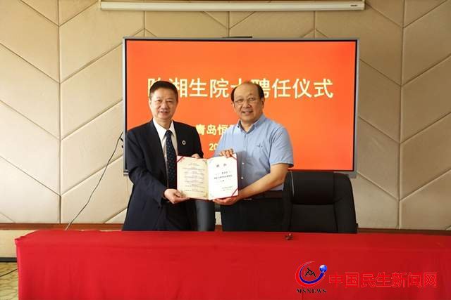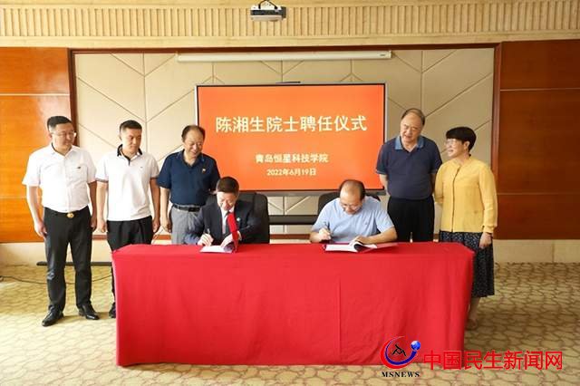 接著,舉行聘任儀式,陳湘生院士受聘為青島恒星科技學(xué)院建筑工程學(xué)院名譽院長,陳昌金董事長為其頒發(fā)聘書。