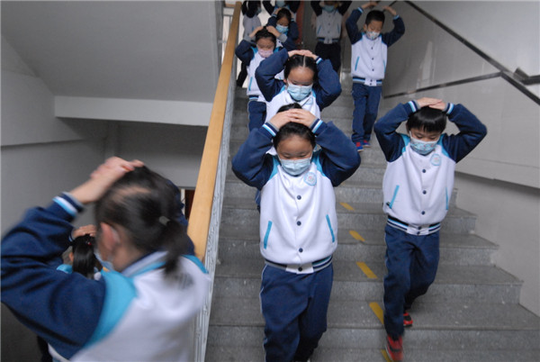 “防范化解災(zāi)害風(fēng)險(xiǎn),演練提高實(shí)戰(zhàn)能力。通過這次活動(dòng),我們?nèi)熒粌H再次普及了防震減災(zāi)法制科普知識(shí),增強(qiáng)了防震減災(zāi)意識(shí),而且使全校師生在破壞性地震發(fā)生時(shí)能做到沉著冷靜、迅速有序地實(shí)施緊急避震疏散,切實(shí)提高了應(yīng)急自救互救能力。”實(shí)驗(yàn)一小校長(zhǎng)王蕾說。(張濤)