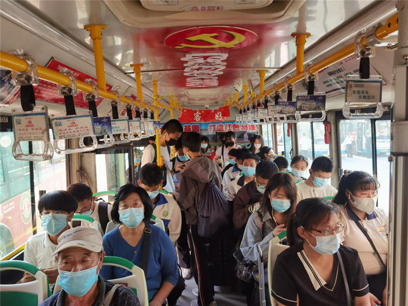 “不忘初心,牢記使命”“永遠(yuǎn)跟黨走”......國(guó)旗、黨徽,一幅幅歷史圖片,一個(gè)個(gè)明艷的主題宣傳牌,自今年10月1日起,乘坐山東青島萊西市706路LNG城鄉(xiāng)公交車,車內(nèi)環(huán)境煥然一新,紅色教育氛圍濃厚,猶如走進(jìn)了黨史學(xué)習(xí)教育基地。
