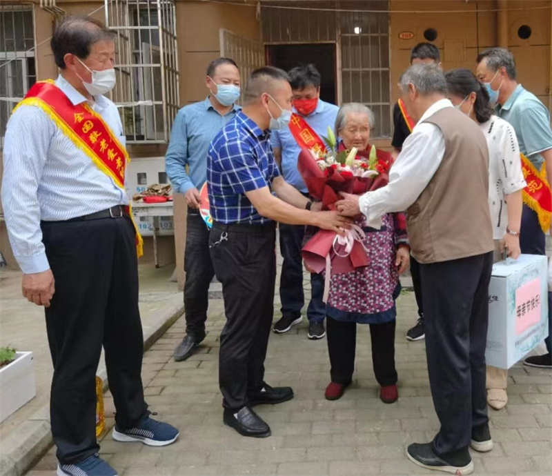 項五九(左三)、王志祥(左一)等看望慰問社區(qū)百歲老人