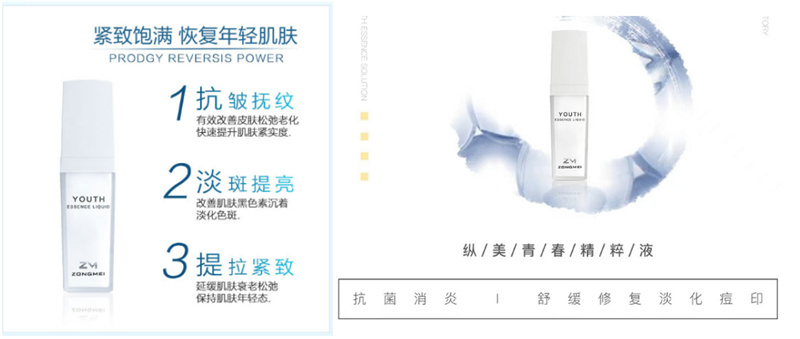 在官方公眾號(hào)的包裝下,縱美青春精粹液這款化妝品居然還具有了“抗菌消炎”的醫(yī)療作用。