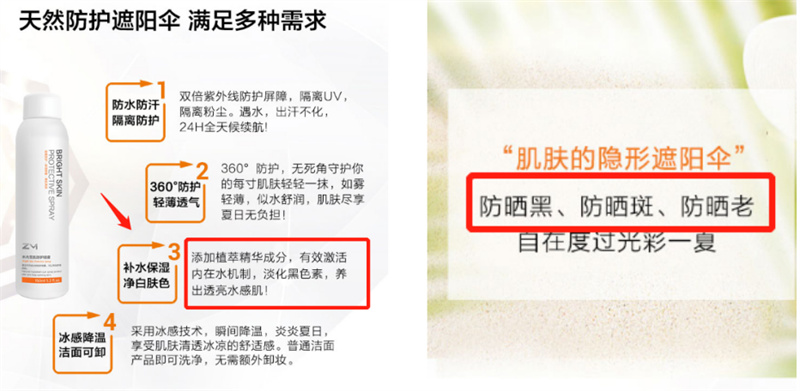 該產(chǎn)品自稱具有防曬功效:“防曬黑、防曬斑、防曬老”。