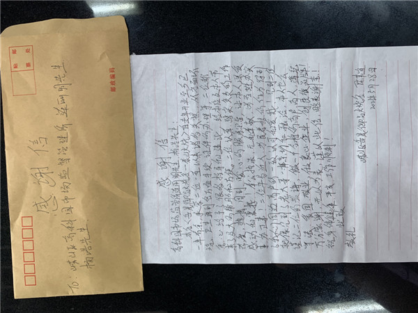 “兩位同志給我?guī)砹藰O大的幫助和方便,還教了我很多要注意的法律法規(guī),我一定謹記,做一個遵紀守法、愛國敬業(yè)的商人,做良心企業(yè)。”讓人感動的是,他把這些寫在感謝信里。