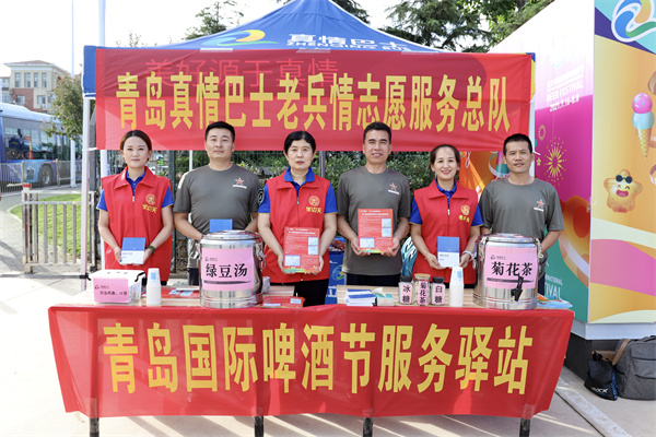 在青島火車站、西客站等主要公交樞紐站,都能看見身著刺繡五角星紅色旗袍的真情巴士客服志愿者,他們?yōu)榘朔接慰吞峁┚€路咨詢、出游指導等服務。在啤酒節(jié)城周邊,可以看到身著不同顏色的馬甲的真情巴士志愿者,21個團隊的稱呼雖然各有不同,但是他們都有一個共同名字—“聚真情”志愿服務聯(lián)盟。