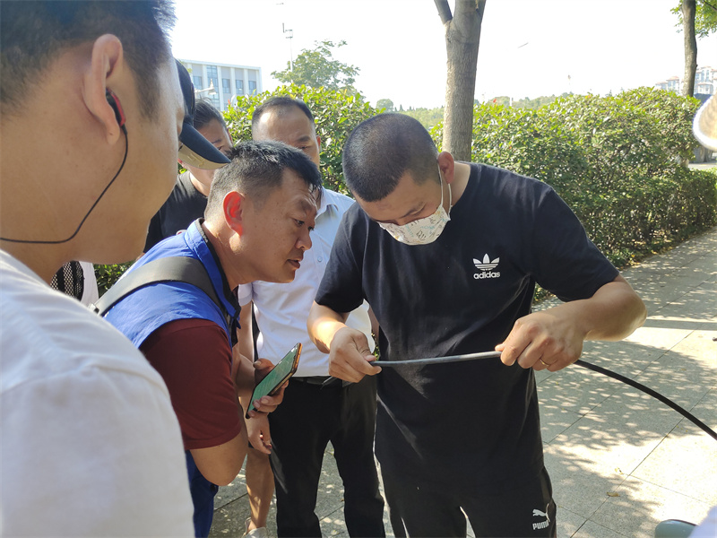 9月8日上午,接到群眾反映松嶺路科大路地鐵站B口附近電線雜亂問題,下午,嶗山區(qū)城市管理局組織調度聯通、移動、電信、廣電、鐵塔等相關通訊單位,對此處問題進行處置,發(fā)現部分弱電線中斷已成為廢棄線纜,工作人員馬路現場辦公,按線纜線路尋找到源頭解決問題。