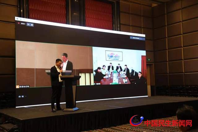 商顯福通過視頻連線在霍爾果斯向與會企業(yè)家致辭