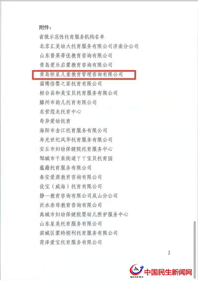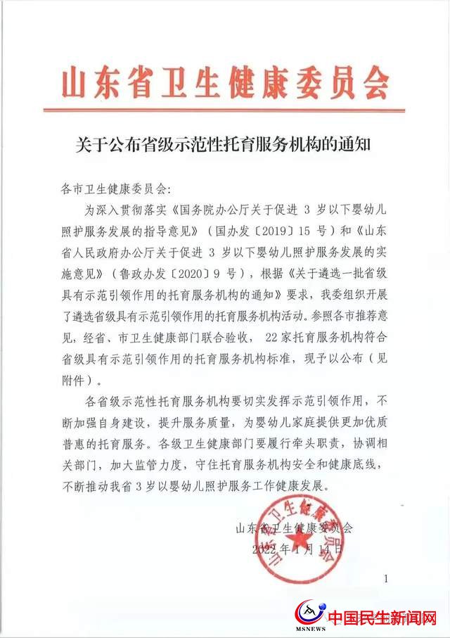 2022年1月14日,山東省衛(wèi)生健康委員會(huì)正式確定青島恒星托育中心為“省級(jí)示范性托育服務(wù)機(jī)構(gòu)”!