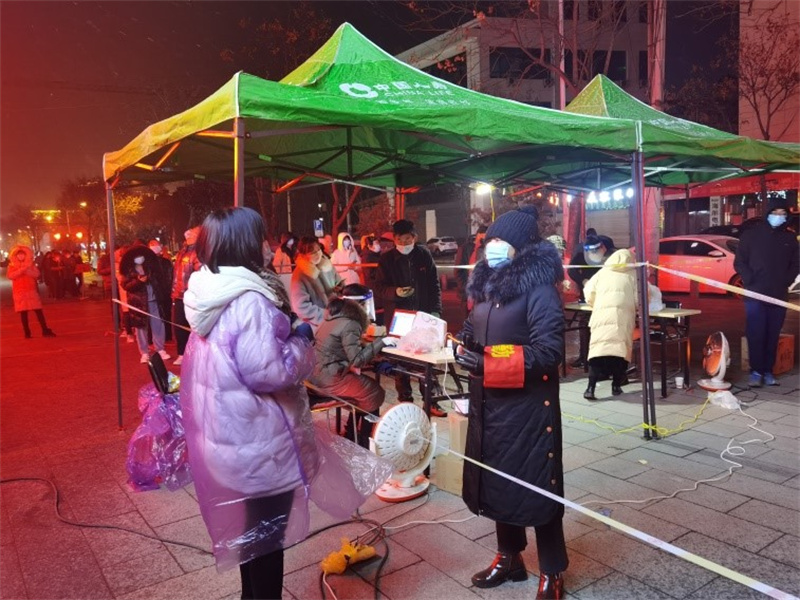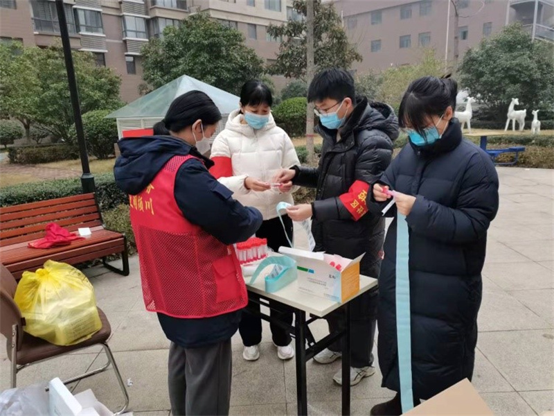 “人人爭(zhēng)當(dāng)志愿者,人人參與疫情防控。雖然我們不是醫(yī)生、護(hù)士,但我們應(yīng)該盡自己的綿薄之力,和大家一起打贏這場(chǎng)防控戰(zhàn)疫!”志愿者們身穿紅色馬甲,在檢測(cè)現(xiàn)場(chǎng)協(xié)助醫(yī)護(hù)人員登記信息、維持秩序,宣傳檢測(cè)知識(shí),為不會(huì)使用手機(jī)微信小程序掃碼登記的居民提供指導(dǎo)幫助,為老人兒童開(kāi)辟綠色檢測(cè)通道。