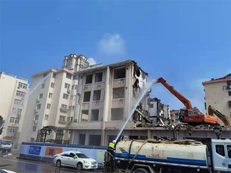 除此之外,城建局協(xié)調(diào)地鐵4號(hào)線(xiàn)公司與周邊居民進(jìn)行了良好溝通,得到了居民對(duì)地鐵建設(shè)工作的理解和支持,在拆除全過(guò)程實(shí)現(xiàn)了居民“零投訴”,真正將實(shí)事辦好。在拆除過(guò)程中,因拆除房屋緊鄰周邊居民樓,為確保群眾安全,現(xiàn)場(chǎng)搭建了防護(hù)棚方便居民安全通行,同時(shí)設(shè)置圍擋、警戒線(xiàn)進(jìn)行封閉管理,增設(shè)鋼板對(duì)地面及市政井蓋進(jìn)行防護(hù),監(jiān)理負(fù)責(zé)人全程旁站,指導(dǎo)施工單位嚴(yán)格按照施工方案安全拆除;施工過(guò)程中也嚴(yán)格做好生態(tài)環(huán)保工作,拆除現(xiàn)場(chǎng)配備4輛灑水車(chē),不間斷的進(jìn)行灑水降塵,減少揚(yáng)塵污染。
