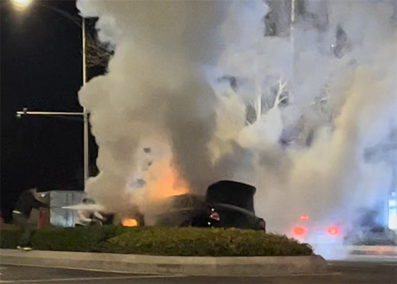 > 膠州一黑色“凱美瑞”轎車沖進(jìn)綠化帶 隨后發(fā)生自燃