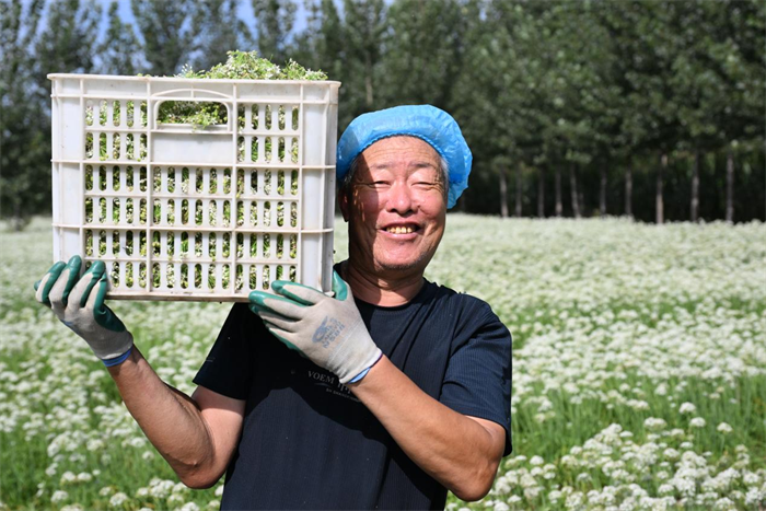 李前莊村韭菜基地采取“一年兩茬菜一季花”的種植銷售模式,保障村民一年四季可收獲、收入高。每年在韭菜除草、收割、捆綁、韭花采摘、韭菜籽翻曬等。農(nóng)忙時(shí)節(jié),還能為周邊村莊提供200多人的就業(yè)崗位。