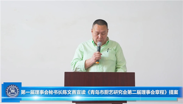 青島市廚藝研究會(huì)第一屆理事會(huì)秘書(shū)長(zhǎng)陳文善同志,宣讀《青島市廚藝研究會(huì)章程》提案,與會(huì)代表進(jìn)行表決通過(guò)。