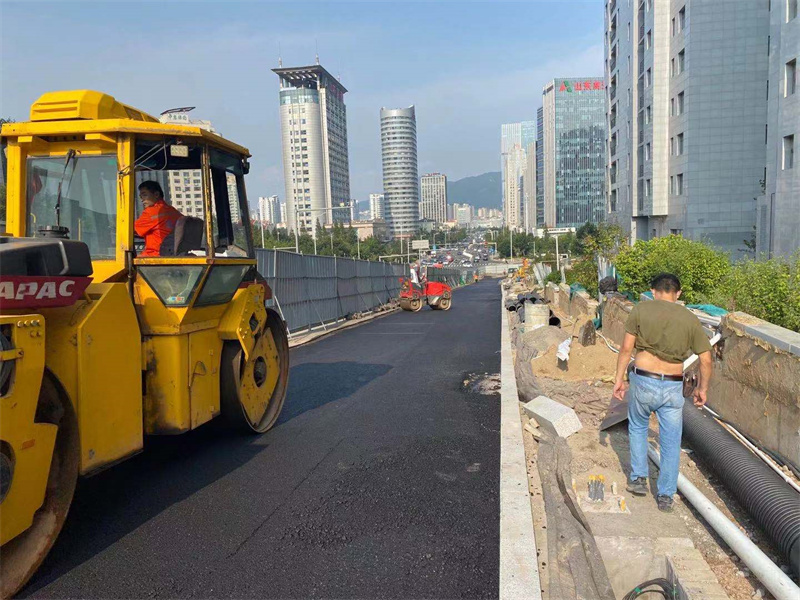 該拓寬工程施工內(nèi)容主要包括道路鋪裝、安裝交通設(shè)施、安裝路燈以及綠化建設(shè)。工程于2021年6月開工,現(xiàn)已完成地面附著物清理、道路下方管線遷改工作,整體工期已完成。同時(shí)嶗山區(qū)城市管理局已會同交警部門對改造后的現(xiàn)場交通標(biāo)線、標(biāo)識進(jìn)行了方案確定,重新進(jìn)行了施劃,現(xiàn)已實(shí)現(xiàn)通車,極大緩解了山東頭路、苗嶺路等路段交通壓力。目前,施工單位正在加緊安裝路燈等配套設(shè)施,方便路人夜間安全行走。