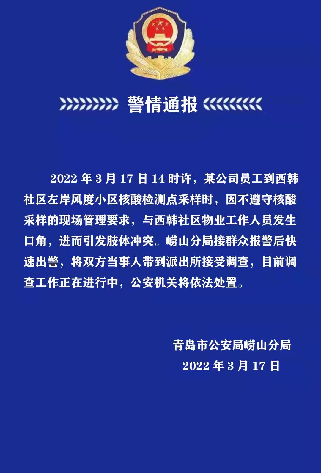 地方 > 【警情通報(bào)】嶗山某公司員工核酸檢測(cè)點(diǎn)采樣不服從管理發(fā)生爭(zhēng)斗被調(diào)查
