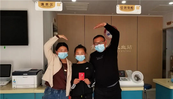 獻(xiàn)血熱情高漲的獻(xiàn)血屋中,有愛的一家三口吸引了大家的目光,上小學(xué)的女兒握著正在獻(xiàn)血的爸爸劉遠(yuǎn)軍的手,滿眼崇拜地說“爸爸您就是我心中的英雄,您獻(xiàn)血幫助別人,我也要獻(xiàn)血助人為樂。”一番激昂的話語讓我們體會到,傳遞正能量的爸爸在女兒心中樹立了高大的形象,激發(fā)了女兒助人的信念。獻(xiàn)血6800毫升的劉遠(yuǎn)軍是九聯(lián)集團(tuán)的一名工人,適逢假期他帶女兒來感受一下無償獻(xiàn)血的愛心氛圍,卻被女兒心中的話語所感動,他說:“我就是一個(gè)平凡的勞動者,無償獻(xiàn)血是我力所能及的事情,希望我這小小的付出能帶動女兒做一個(gè)善良的人。”這就是一個(gè)父親最樸實(shí)的愿望。