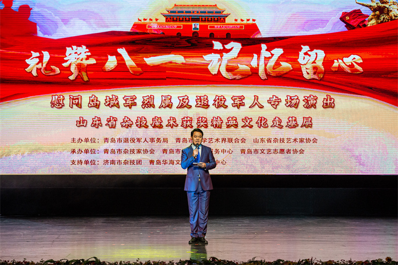 青島快訊 7月26日,為喜迎黨的二十大勝利召開(kāi),在中國(guó)人民解放軍建軍95周年即將到來(lái)之際,由青島市文學(xué)藝術(shù)界聯(lián)合會(huì)、青島市退役軍人事務(wù)局、山東省雜技藝術(shù)家協(xié)會(huì)主辦,青島市雜技家協(xié)會(huì)、青島市退役軍人服務(wù)中心、青島市文藝志愿者協(xié)會(huì)承辦的“禮贊八一•記憶留心”慰問(wèn)島城軍烈屬及退役軍人專場(chǎng)文藝演出,在青島永安大劇院隆重舉行。