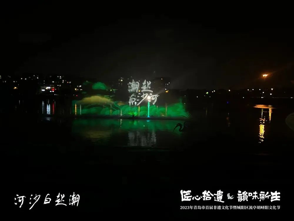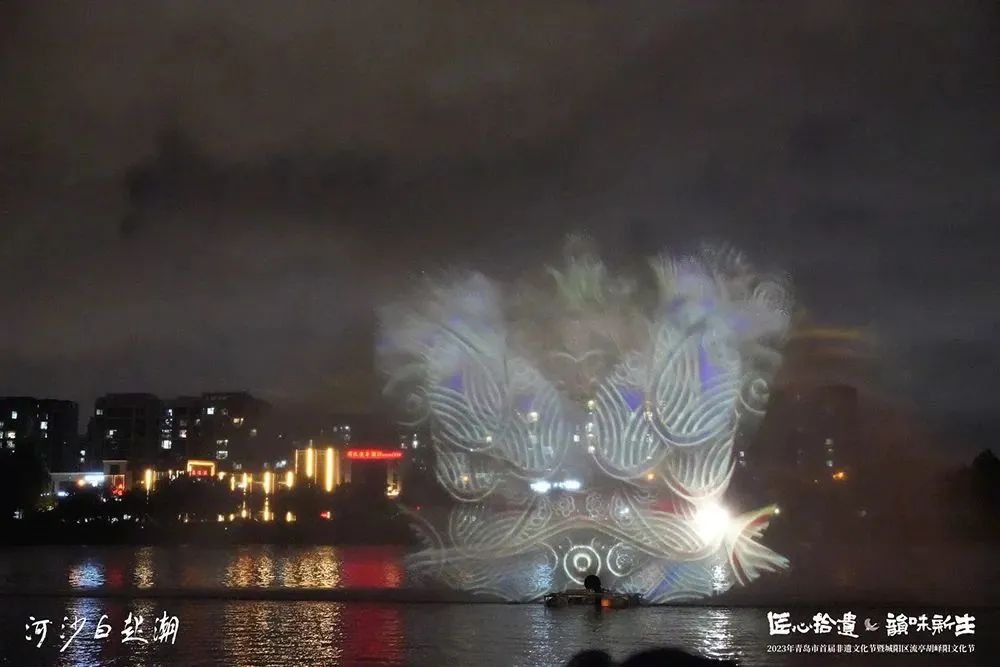 讓非遺“潮”起來!開幕式現(xiàn)場,“非遺+科技”令人耳目一新,流連忘返。在非遺水陸光影秀《潮起白沙河》中,白鷺、文鰩魚、山、海、云、傳統(tǒng)書法等元素通過水幕光影的形式,為大眾營造出超酷炫的夢幻空間,吸引了眾多游客打卡留影,熱度空前。在白沙河這個(gè)城陽未來的新中心,以文化創(chuàng)意作為驅(qū)動(dòng),以美學(xué)作為引領(lǐng),通過“非遺+藝術(shù)+科技”的形式,用一場沉浸式的光影來喚醒民眾對非遺文化創(chuàng)新發(fā)展的熱情,以及對人文與自然、歷史與當(dāng)代、經(jīng)濟(jì)發(fā)展與文化傳承關(guān)系的關(guān)注,是再合適不過了。