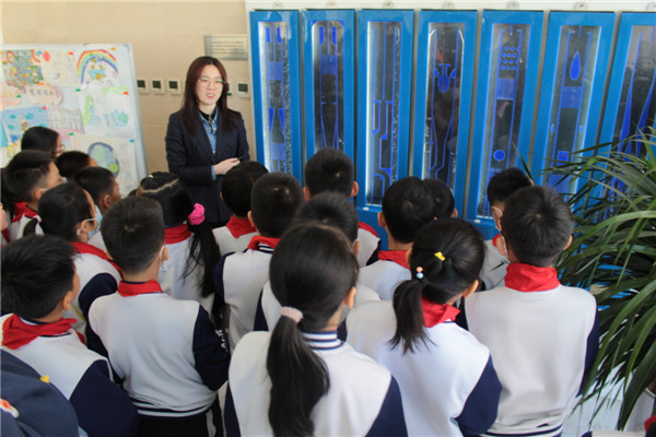 進入監(jiān)測中心大廳,工作人員首先結(jié)合《小水滴的旅行》專題片向大家介紹了中國水資源現(xiàn)狀、青島市水資源保護現(xiàn)狀以及自來水生產(chǎn)工藝,讓大家了解自來水是如何進入家家戶戶的。