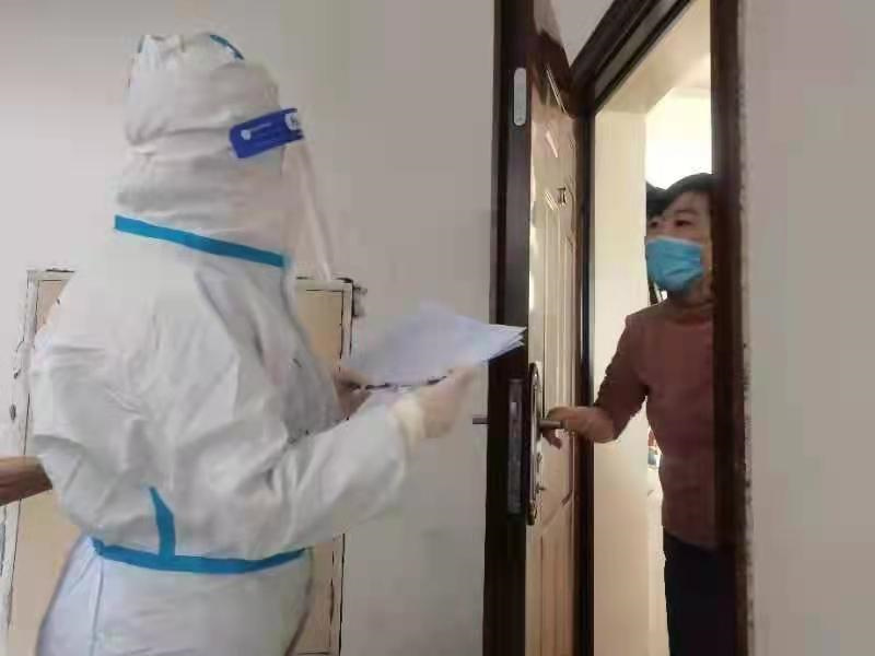 在敲門行動(dòng)中,宋嬌逢門必敲,寧可多等幾分鐘,也要保證無一漏檢,在某單元敲門時(shí),發(fā)現(xiàn)一位76歲的老太太一人居住,兒女不在身邊且行動(dòng)不便,沒做過幾次核酸檢測。了解情況后,宋嬌認(rèn)真登記了老太太的身份證,按流程立即上報(bào),積極聯(lián)系醫(yī)護(hù)人員當(dāng)日上門為大姨進(jìn)行了核酸檢測,確保了小區(qū)內(nèi)人人必檢,無一遺漏。
