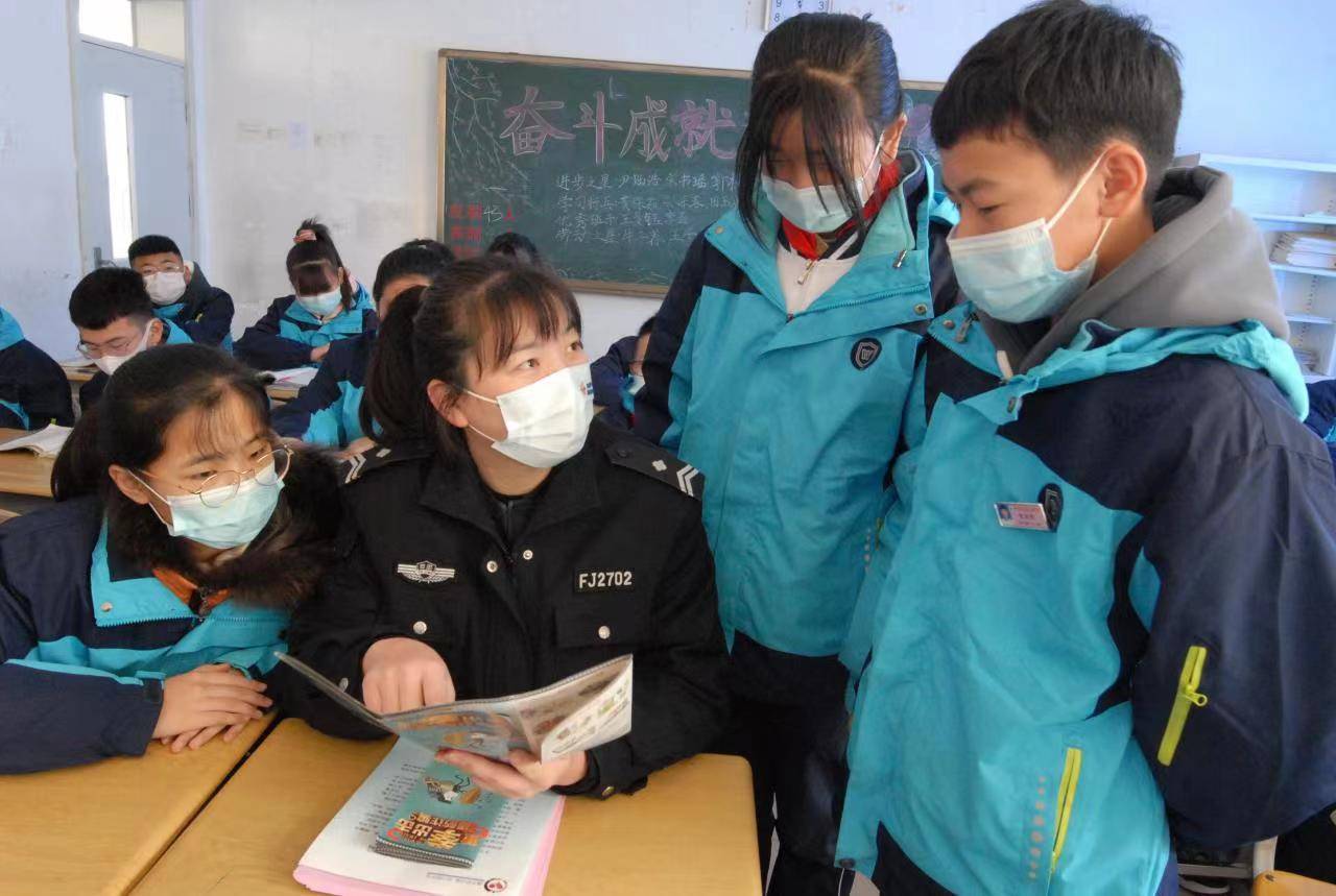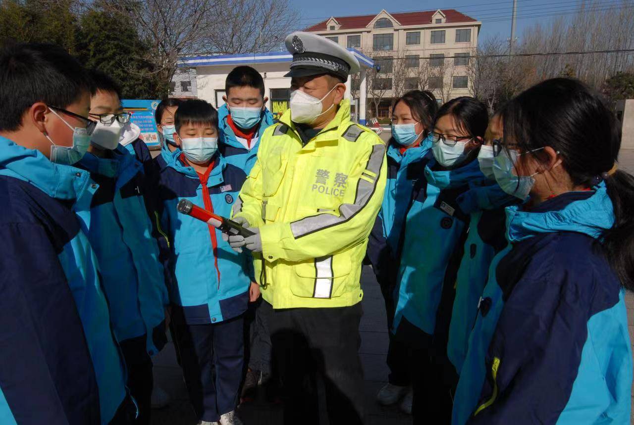 12月1日,山東省青島市公安局即墨分局藍(lán)村派出所民警在青島市即墨區(qū)藍(lán)村中學(xué)為學(xué)生講解交通安全知識(shí)。