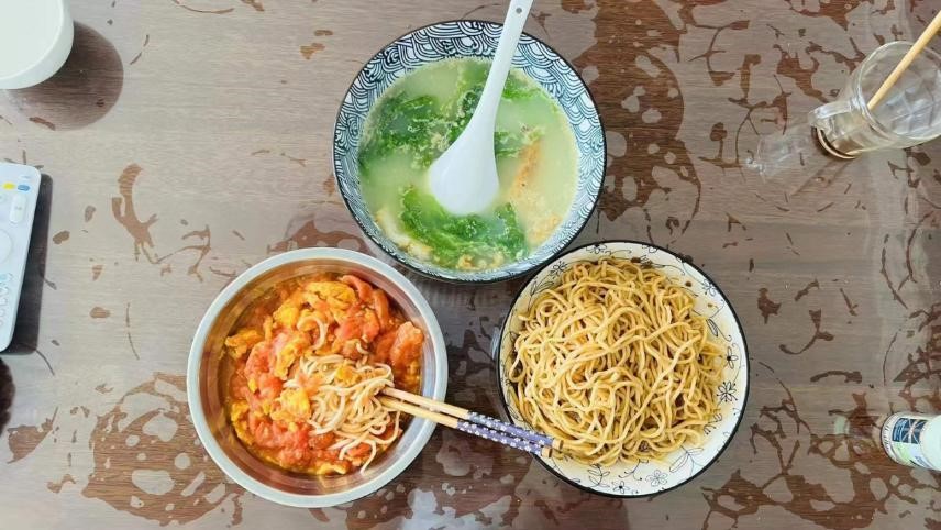 舜山府項(xiàng)目因疫情原因緊急封控,但業(yè)主呂先生一家人都在外工作,導(dǎo)致不會(huì)做飯的孩子獨(dú)自在家隔離。物業(yè)管家劉曉赟了解情況后,去附近超市購(gòu)買蔬果等物品來(lái)到業(yè)主家中,得到小業(yè)主同意后幫其做飯。因?yàn)榱私獾胶⒆犹羰常芗覄在S為了滿足孩子的口味,專門為孩子做了兩種口味的熱湯面。