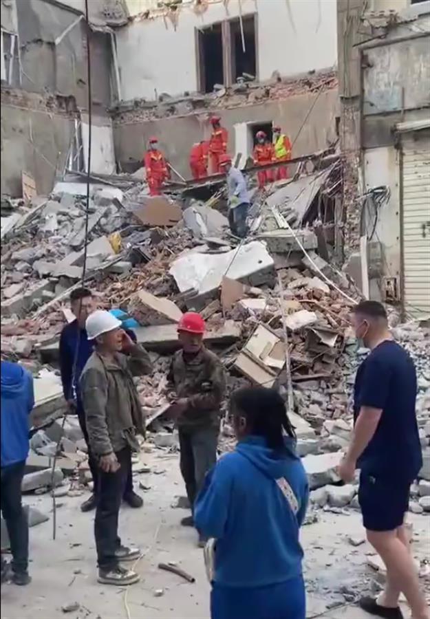 上午10時(shí)許,該商戶表示,事故現(xiàn)場(chǎng)已圍起了警戒線,有工作人員駐守。附近一餐館老板告訴記者,現(xiàn)場(chǎng)有大型工程車(chē)輛和消防救援人員?,F(xiàn)場(chǎng)視頻顯示,在一建筑物的廢墟中,有消防人員正在瓦礫中作業(yè),旁邊有大型工程車(chē)輛。
