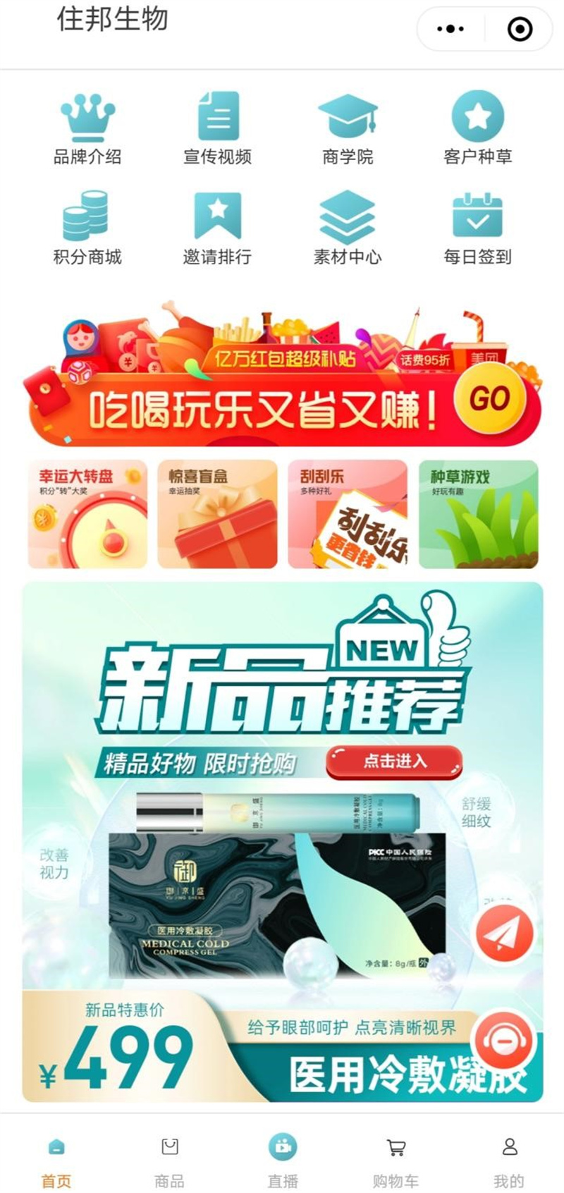 通過代理分享的二維碼進(jìn)入微信小程序“住邦生物科技”,商城中只有“御京盛·醫(yī)用冷敷凝膠”這一款產(chǎn)品,產(chǎn)品零售價(jià)為499元/盒,目前,小程序是該產(chǎn)品的唯一購(gòu)買渠道。