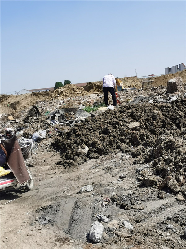 為核實事情的真?zhèn)危揪W(wǎng)工作人員驅(qū)車前往淄川賈村社區(qū)。根據(jù)報為人指定的位置,在賈村社區(qū)污水處理廠對面,有一塊占地大約八十畝的施工現(xiàn)場,現(xiàn)場有挖掘機在挖土作業(yè),有大量篩好的沙石在旁邊堆放,不時有大型車輛出入痕跡。而讓調(diào)查員感覺詭異的是,施工現(xiàn)場咋會垃圾遍地?現(xiàn)場還有一位撿垃圾的大爺,據(jù)其介紹,這些垃圾都是從外面拉過來的,填在他們挖走的土坑里,他感覺有些有用,準備撿回去賣破爛!