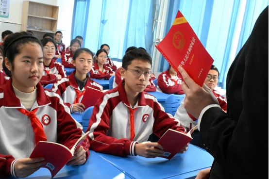 12月4日上午,山東省青島市即墨區(qū)人民法院法官法官韓爽、王潔走進即墨區(qū)新興中學,在課堂上以幾個與憲法相關的問題切入,通過互動提問,開始了憲法課堂進校園的“憲法課”。